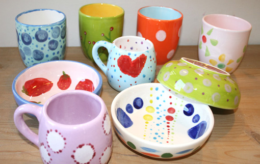 Zum Angebotspreis von 24 € pro Kind, ab einer Gruppengröße von 7 Kindern, stehen ein Schüsselchen, ein Becher oder eine Tasse zur Auswahl. Die Auswahl sollte bitte vorab bei der Bestellung per Email getroffen werden.